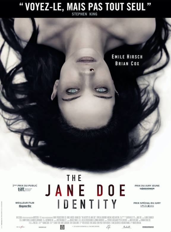En plus d’avoir une affiche complément ratée, "The Jane Doe Identity" est un huis-clos mise en scène sans relief, sans réels enjeux dramatiques ni réel suspense. Malgré une mise en place prometteuse, on n’a jamais la trouille, on regarde ça d’un œil détaché et on se fout très vite de ce qui peut arriver à ce père et à ce fils médecins légistes. Sans intérêt.